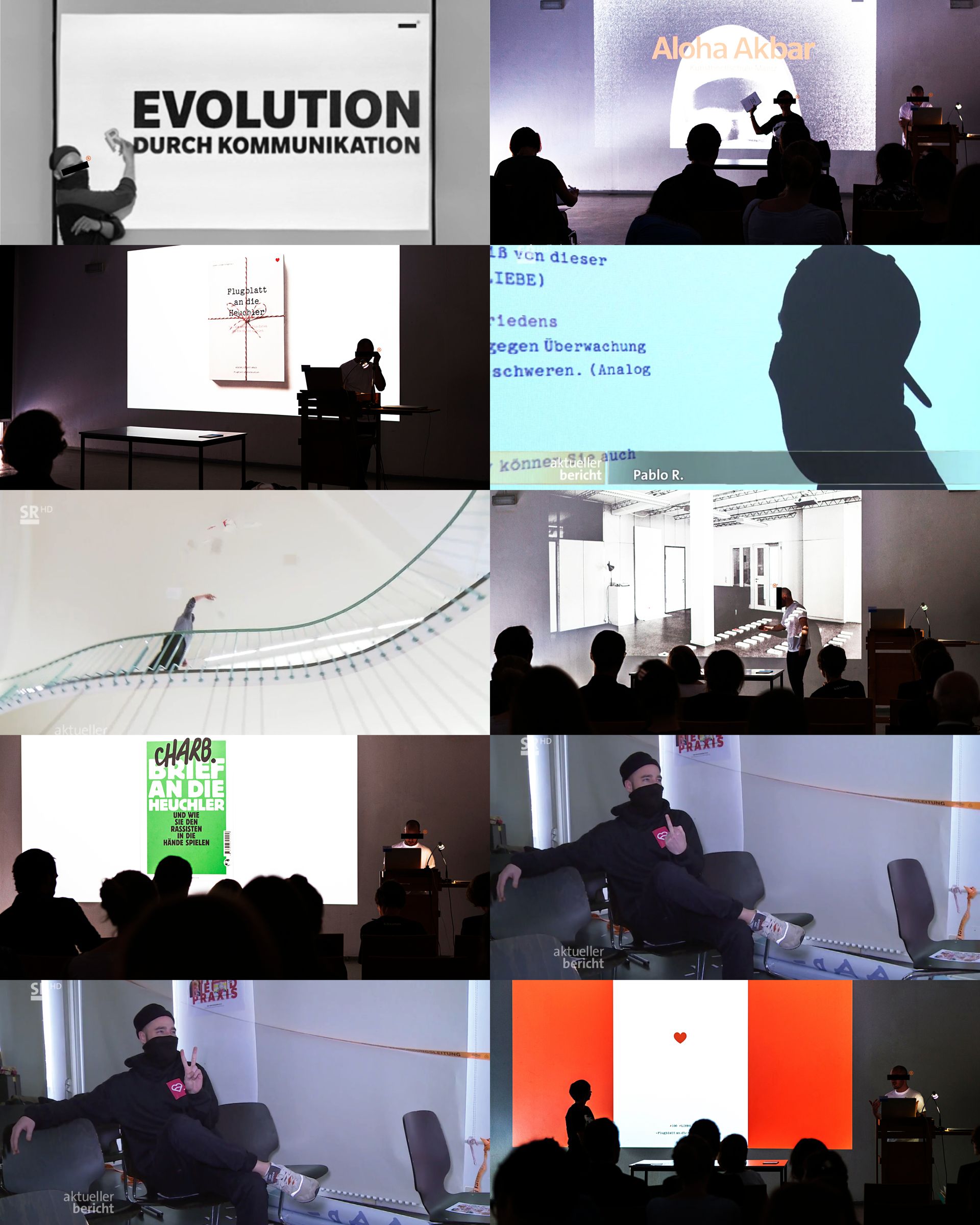 war eine der beiden lecture-performances. Bestimmt und mit viel Lachen ruft er zum Widerstand auf! #WEISSEROSE - so trafen hier die Strategie von Tharie Jungen auf eine performance, die eben dieses Lachen als Instrumentarium subversiv einsetzte. KUNSTHOCHSCHULE MAINZ
