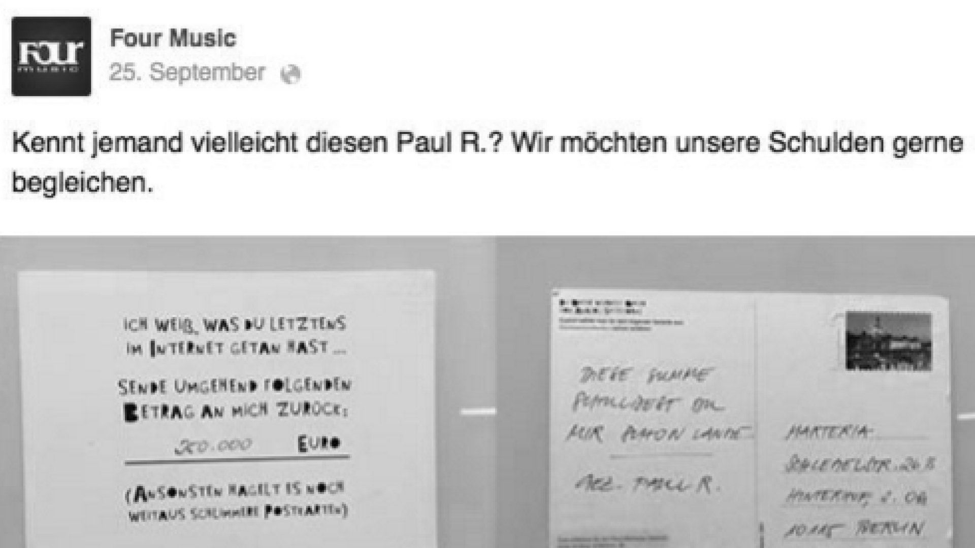 Kennt jemand vielleicht diesen Paul R? Wir möchten unsere Schulden gerne begleichen. FOUR MUSIC